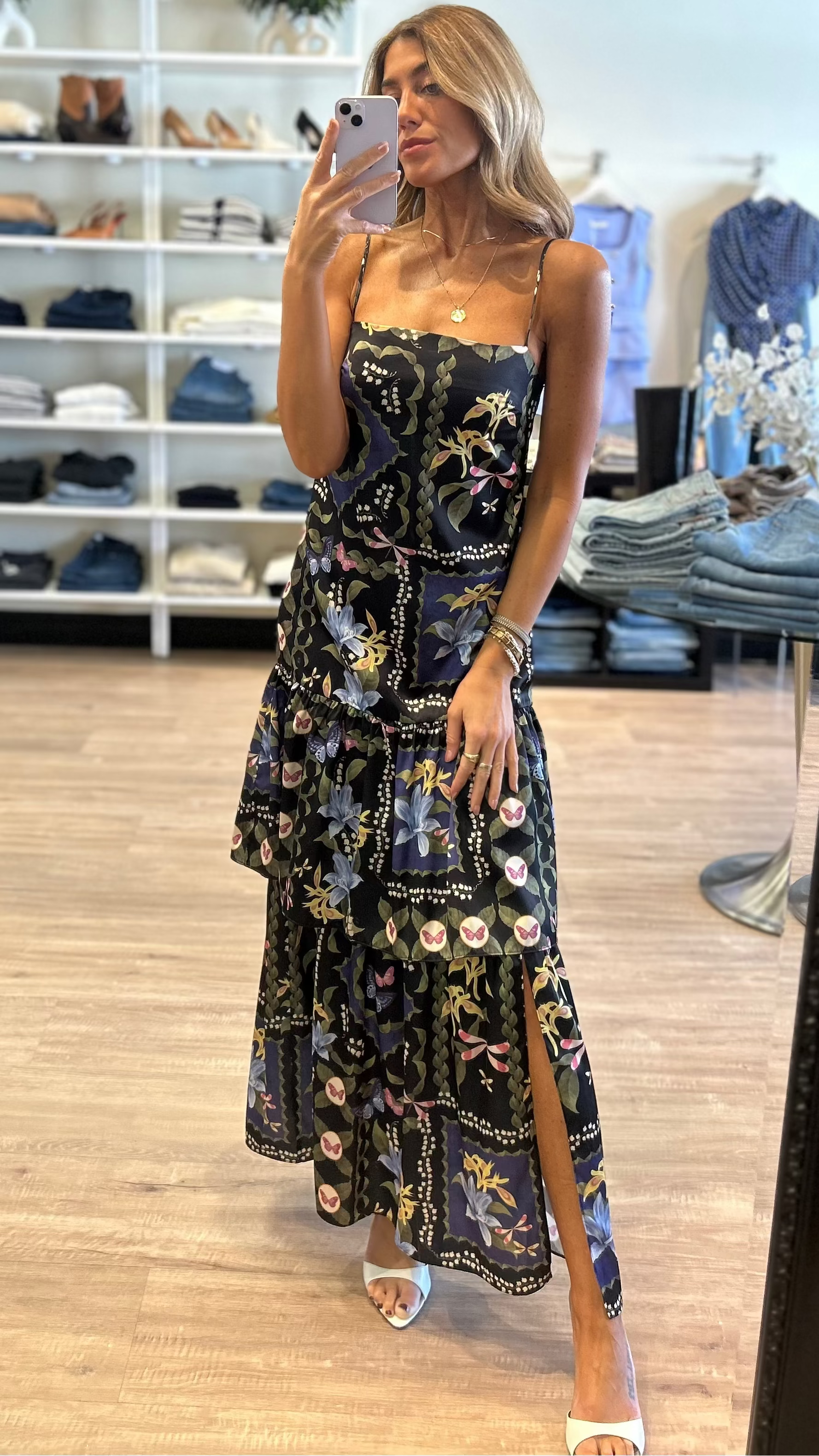 Misa Paulette Tiered Maxi Dress in Patchwork Butterfly