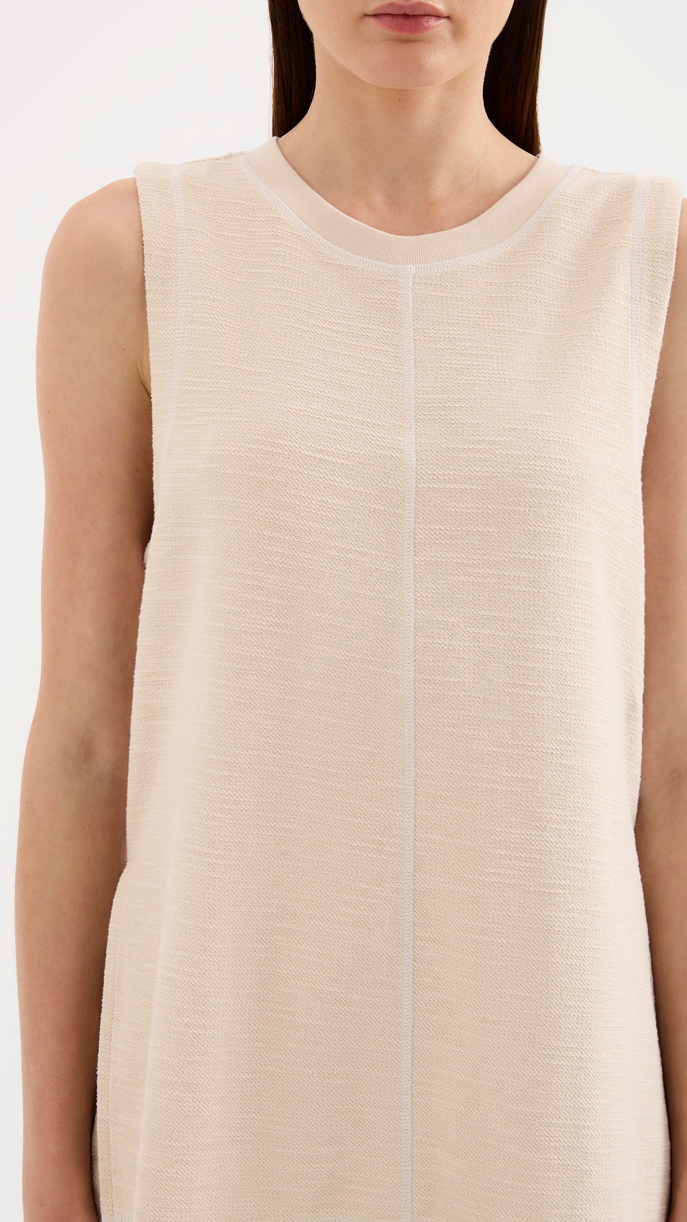 - Sleeveless tunic silhouette